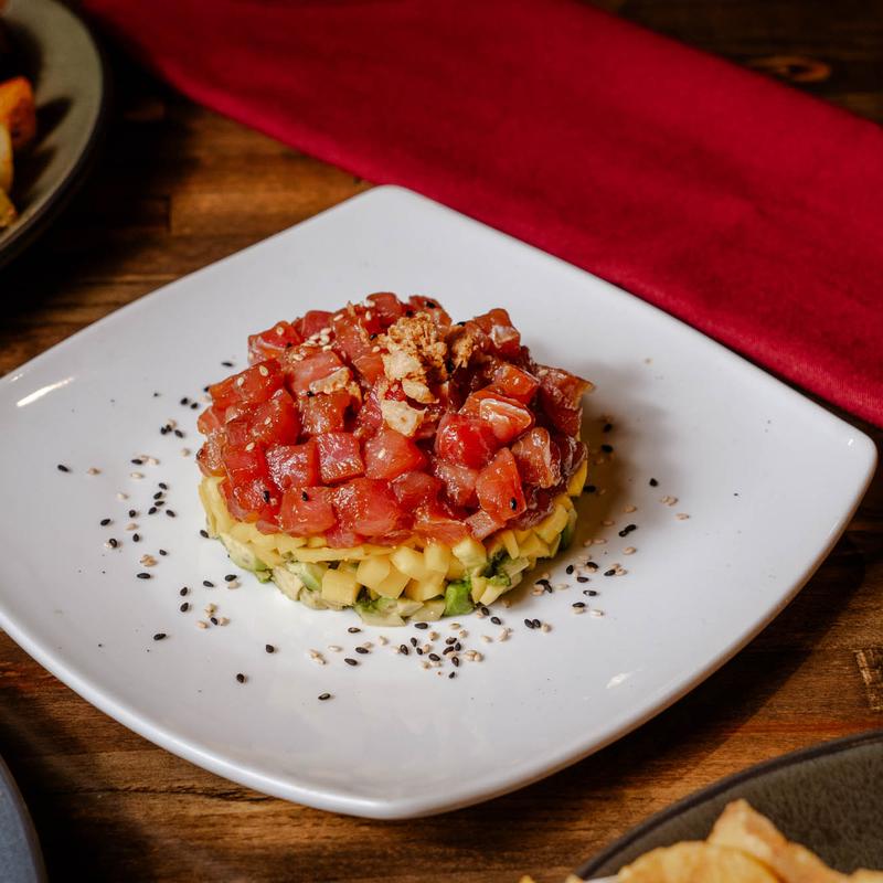 Mahi mahi, tomato, red onion, cucumber, mango, cilantro, lime