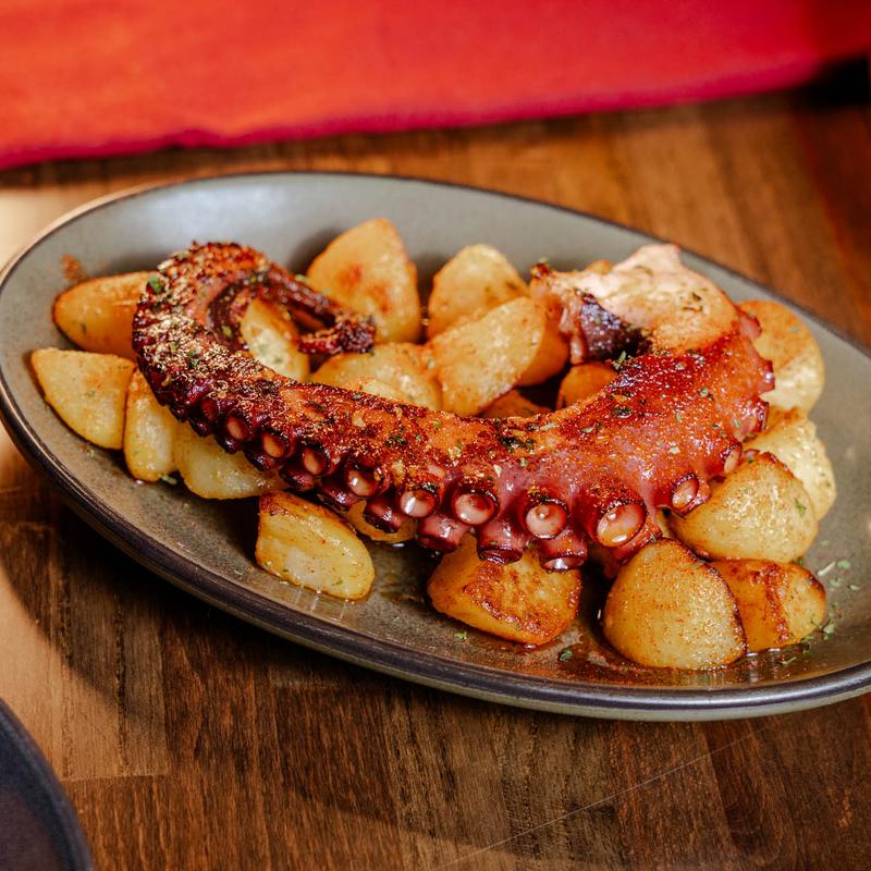 Grilled octopus, paprika, oregano, mashed potatoes, olive oil