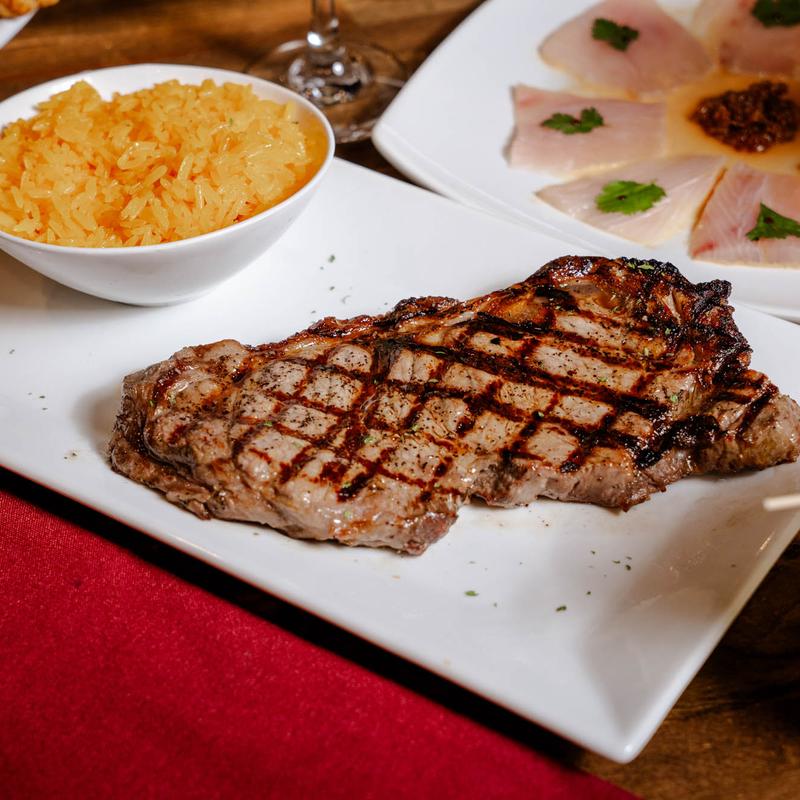 Grilled mahi mahí, garbanzos, tomato sauce, yuca, rice